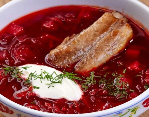 Обжарьте свёклу. И ещё один секрет: добавьте к свёкле чайную ложку уксуса и сахара. И только потом томатную пасту. Перемешайте, дожарьте и добавьте в суп.