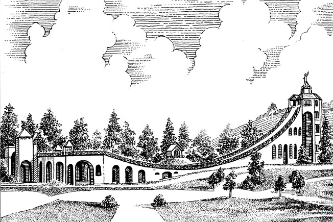 Promenades aériennes («Воздушные прогулки»), построенные в 1817 году в Париже, в парке Божон. С гравюры Амбруаза Луи Гарнерэ
