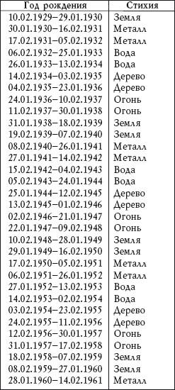 Определение стихии по году рождения