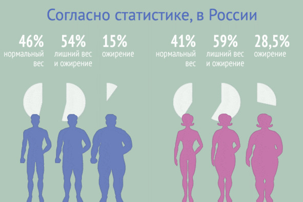 Россия уже стоит на 4 месте по числу людей, имеющих избыточный вес и ожирение. Причина тому — переход на западный тип питания, в том числе удовлетворение вкусовых рецепторов и получение быстрых удовольствий от телевизора, интернета и еды.