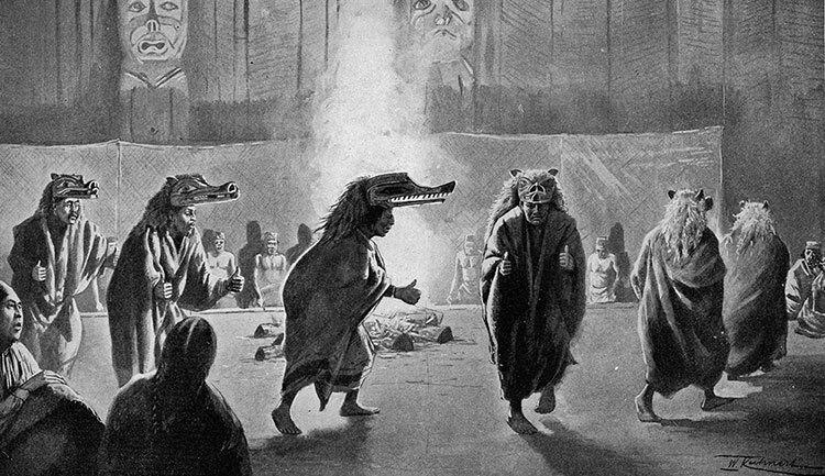 Фридрих Вильгельм Кунерт. Иллюстрация из исследования Франца Боаса «Социальная организация и тайные общества индейцев квакиутль». 1897 г.
