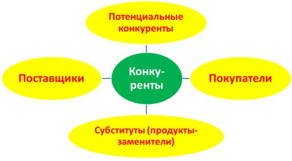 Ниже представлена модель М. Портера для анализа среды прямого воздействия, где выделено пять важных составляющих.