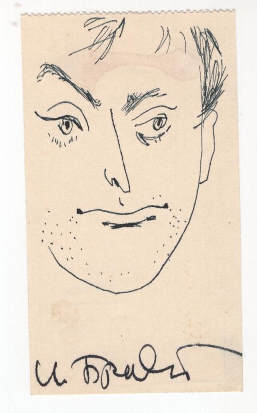 Я часто делал зарисовки с него в блокнот, который всегда ношу с собой. Однажды он внимательно пролистал все рисунки и на одном расписался: «Мишель, вот этот похож». Этот мой рисунок впервые был опубликован в 1980 году в нью-йоркском сборнике «Часть речи», посвященном 40-летию со дня рождения Иосифа Бродского. Потом он часто воспроизводился в американских и европейских изданиях. Появился на обложке сборника статей о Бродском, вышедшем в Лондоне, а в перестроечное время — и в России. В нескольких последних сборниках он уже помещен среди рисунков Бродского как его автопортрет.