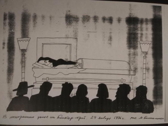 А 29 января 96-го года мы прощались с ним в похоронном доме на Бликер-стрит. Фотографировать не разрешали, я сделал рисунок в блокноте, потом увеличил его.