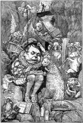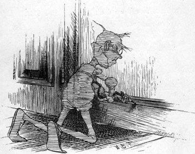 Cold, tired, and cross, and muddy,I had come home, too late to dine,