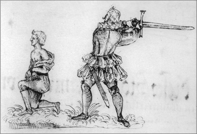 Фронтиспис: Альбрехт Дюрер. «Святая Екатерина Александрийская и палач» (1517 год). Обратите внимание, что палач крепко удерживает святую, стоящую на коленях, прежде чем нанести удар