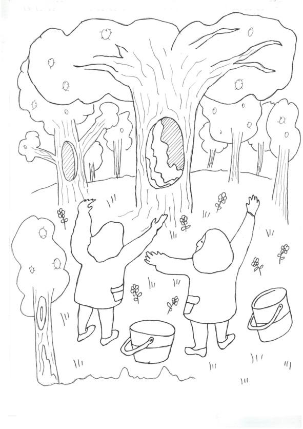 На самом деле в этот день Николь и Музе исполнилось по пять лет. У них было день рождение. Поэтому они побежали в Краснодубово-Тюменцево за ведрами. Они уговорили маму дать им два ведра, и они вернулись на луг, где стоял красный дуб и наполнили их до краев медом. Затем медленно, потому что ведра были тяжелыми, они отнесли их домой.