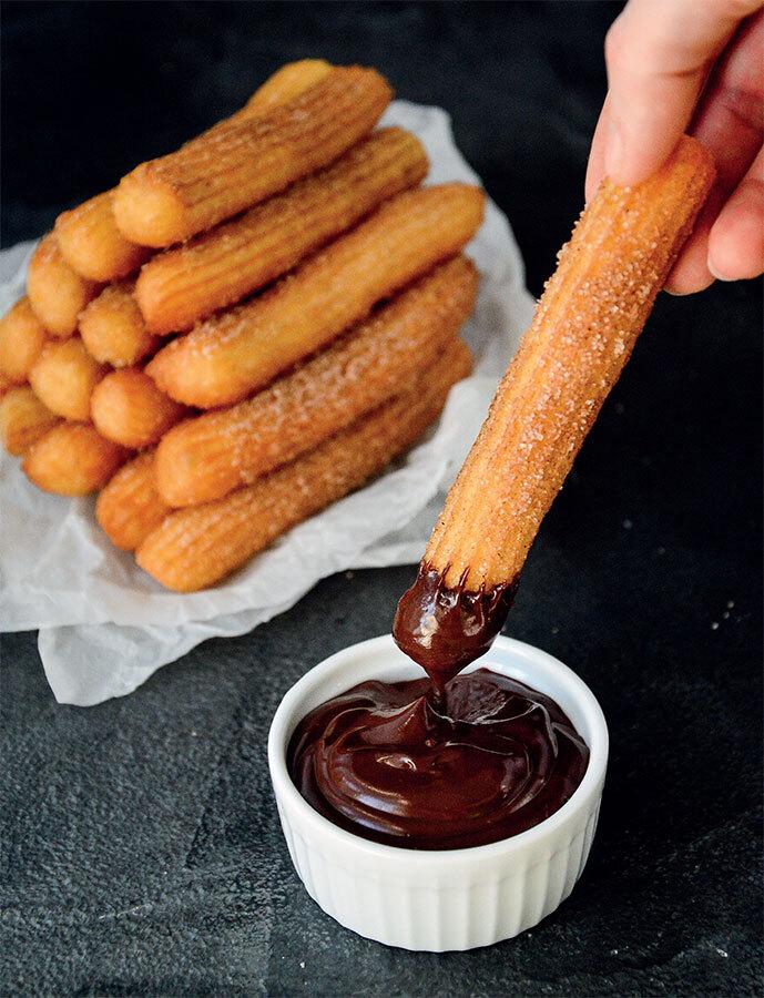 9. Когда чуррос немного остынут, обвалять их со всех сторон в сахаре, смешанном с корицей.