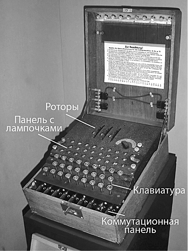 Показанная на рис. 1.1 электромеханическая роторная машина «Энигма» использовалась для шифрования и расшифровки текстовых сообщений, отправляемых по радио. Это устройство немецкого производства появилось во время Второй мировой войны и стало важным технологическим достижением.