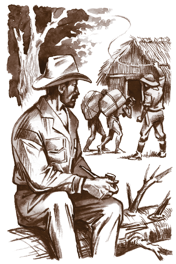 Не прошло и часа после боя, как разбойники уже быстро уходили в джунгли, прихватив ценную добычу. Они взяли также в плен сборщиков каучука вместе с их женами и детьми. Никто не посчитал нужным оглянуться на оставленный лагерь, в котором догорали бараки.