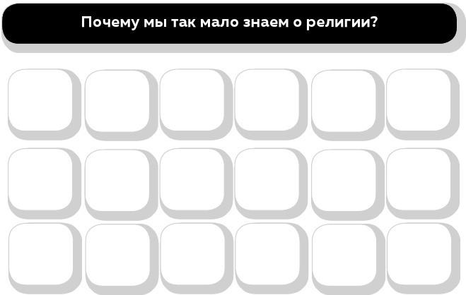 Когда мои коллеги сетуют на тотальное незнание гражданами элементарных вещей из области физики, химии, астрономии и медицины, я могу им только посочувствовать. Но наивно думать, что о религии мы знаем намного больше. А ведь рассуждения о религии наряду с футбольной тактикой входят в «стартовый набор» любого специалиста по всем вопросам. Ваш сосед Анатолий легко выдаст квалифицированную экспертизу по религиозным вопросам, если вы об этом попросите. Правда, его знания могут быть столь же ограниченными, как и знания типичного американца.