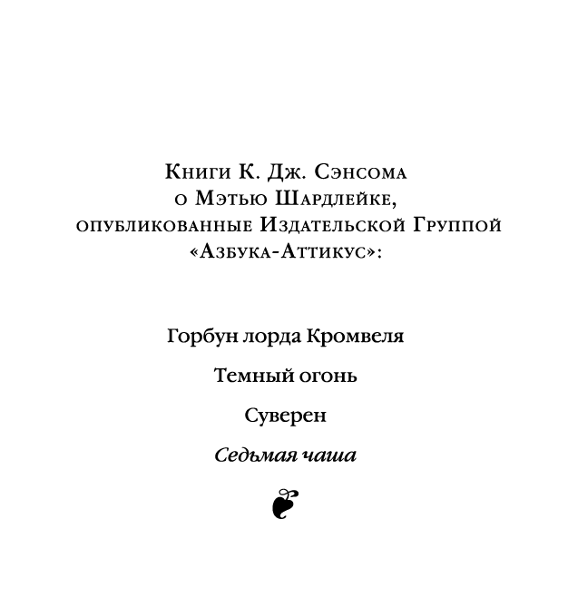 Седьмая чаша : роман / К. Дж. Сэнсом ; пер. с англ. А. Новикова. — СПб. : Азбука, Азбука-Аттикус, 2021. — (The Big Book).