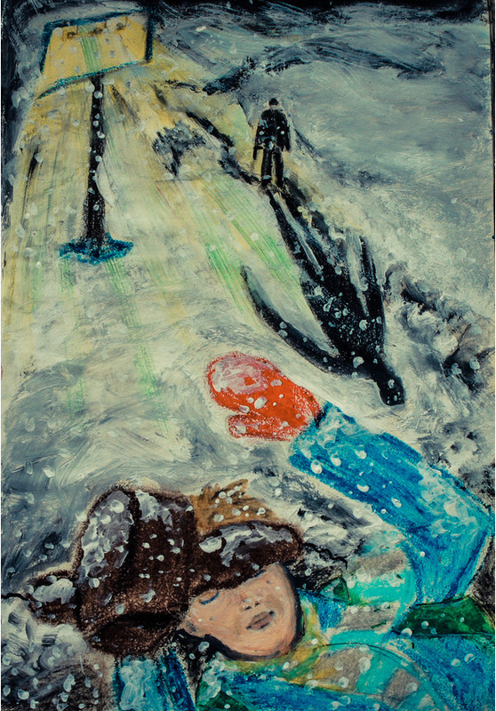 Улицы были пустынны и спокойны. В такой атмосфере путь казался намного интереснее, и можно было избежать глупых вопросов от встречных взрослых на счет того: откуда он, чей он, где живет. Бывало, как привяжутся со своим любопытством, аж до слез, его самого не слушают, а вопросы продолжают задавать. Он им слово, а они ему на каждую букву вопрос, еще и переспрашивают в непонимании, будто с дурачком каким разговаривают или с немым. Один раз из-за шапки, даже спутали его с девочкой…. Желтый свет фонарей падал на искристый снег, который падал на землю, поэтому она освещалась вдвойне. Снега не было днем, но с наступлением вечера все больше и больше снежинок спускалось вниз, десантируясь с серого неба.