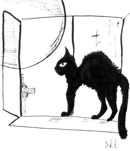 Вдруг за окном мелькнула тень. Луна осветила вздыбленного чёрного кота.