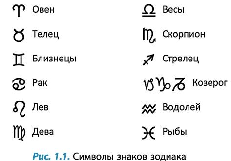 Ваше первое домашнее задание поэтому будет таким: на рисунке 1.1 вы видите все символы, которые вам нужно запомнить. Пожалуйста, заучите их как следует. И обратите внимание, что для Козерога есть три разных символа.