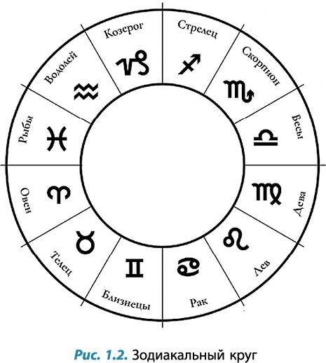 Проще всего достичь хороших результатов, запомнив изображение зодиакального круга, которое вы видите на рисунке 1.2. Вы также найдете другое изображение в Приложении 1. Выбирайте, какое из них вам больше по вкусу. Я советую распечатать одну из этих картинок и разместить там, где вы будете ее часто видеть. Таким образом она постепенно запечатлеется в вашей памяти.