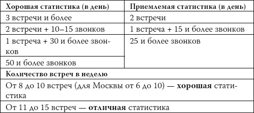 • От 8 до 10 встреч в неделю (для Москвы – от 6 до 10) – хорошаястатистика коммерческой работы.