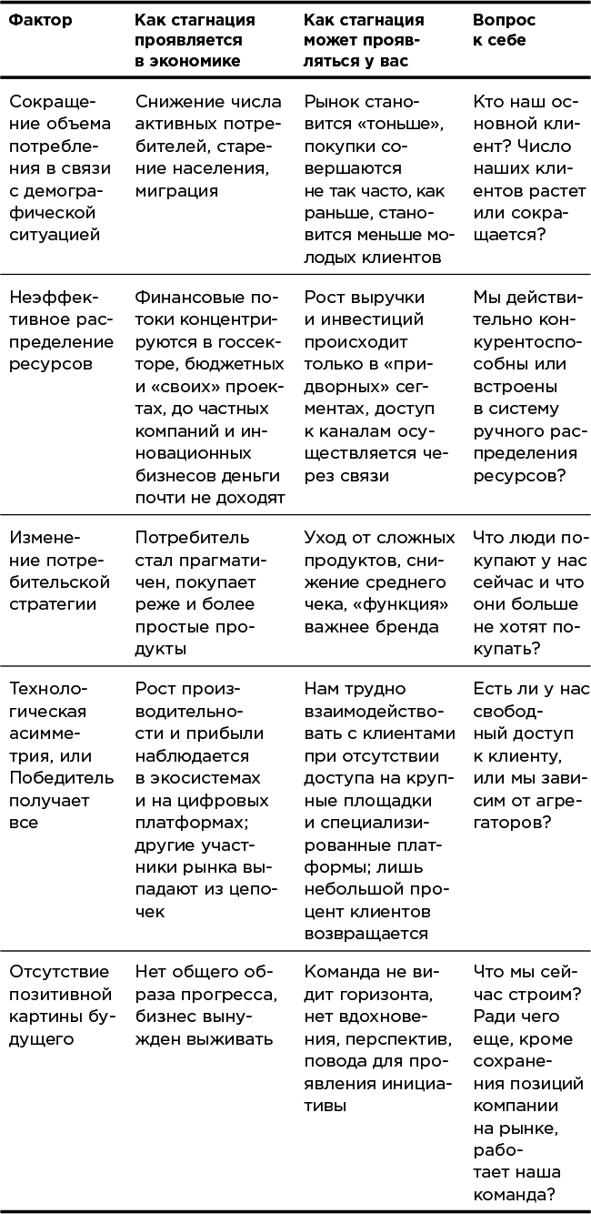 Таблица 2. Признаки стагнации: как распознать, затронула ли она вас