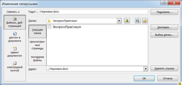 — в Практикуме появится гиперссылка на новый документ ..\Черновик.docx