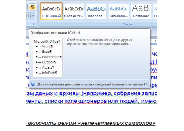 При форматировании текста желательно включить режим «непечатаемых символов» (см. рис.3).