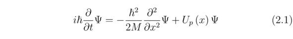 где M — масса электрона (в дальнейшем лептона или фермиона); T``` — период волны де Бройля; t — время; x — координата; Cn — амплитуда колебаний; ω` — угловая частота; Up (x) — потенциальная энергия.