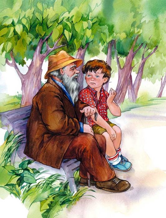 Старик подвинулся и, взглянув на красное сердитое лицо мальчика, сказал: