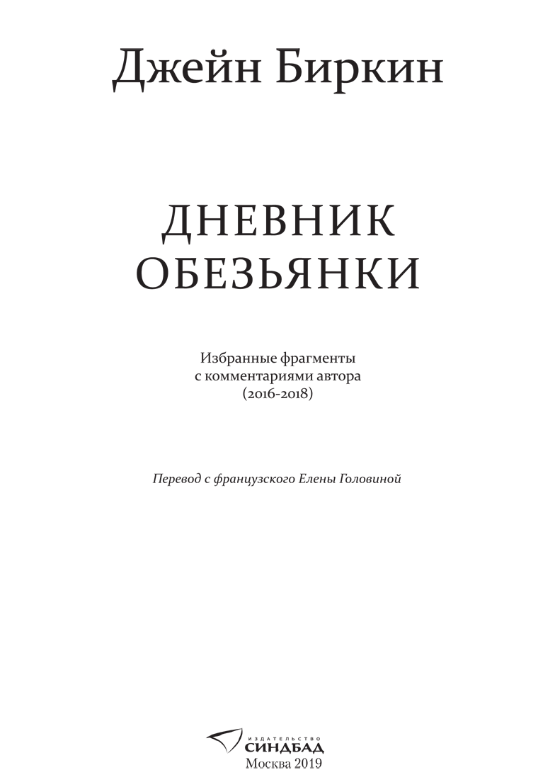 Дневник Обезьянки / Джейн Биркин; [пер. с фр. Е. Головиной]. — М. : Синдбад, 2019.