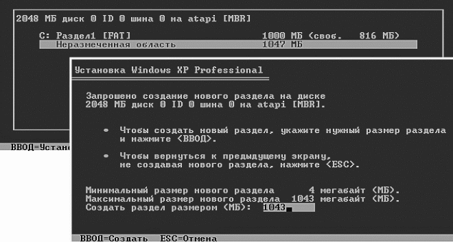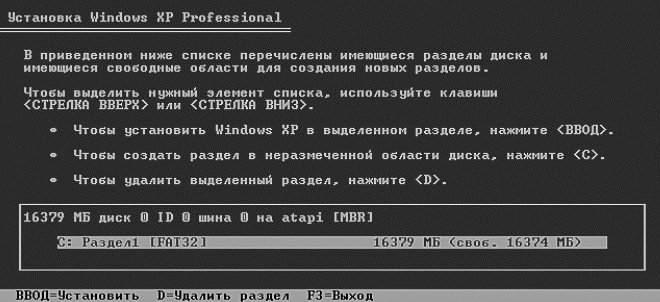 Если же компьютер новый (только что принесенный из магазина), то вы обязательно встретитесь с такой надписью. Но вы не паникуйте. Это означает просто-напросто, что у вас не отформатирован (то есть не размечен) винчестер. Упрямо выбирайте предложение установить ОС на неразмеченную область. То есть нажимаете Ввод.