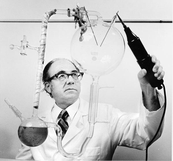 Рисунок 1.1. Стэнли Миллер, отец химической гипотезы происхождения жизни. Простые эксперименты Миллера показали, что ключевые органические соединения могут быть синтезированы из неорганических веществ путем простой химической самоорганизации.(Документы Стэнли Миллера, Специальные коллекции архивы Университета Калифорнии в Сан-Диего).