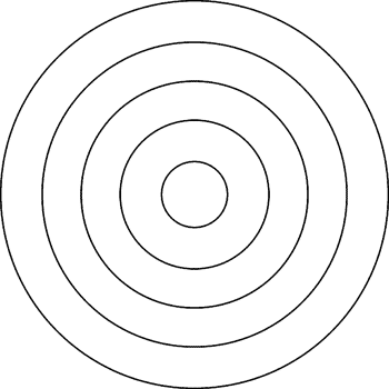 Центр мишени обозначается треугольным флагом высотой 80 см. Достоинство зон мишени: центр – 5 очков и далее 4, 3, 2, 1 очко (рис. 13).