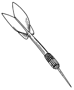 У каждого из игроков свои дротики. При этом их длина не должна превышать 30,5 см (12 дюймов). Вес каждого должен быть не более 50 г.