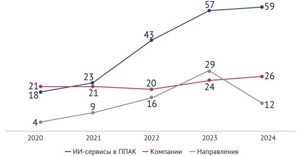 По состоянию на 01.01.2025 г. статистика ИИ-сервисов выглядит следующим образом: