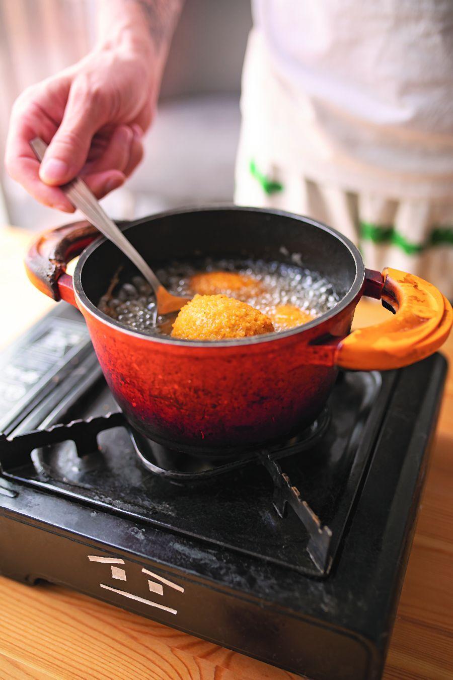 ♦ Жарим в разогретом масле по 2–3 штуки примерно 10 минут на небольшом огне до золотистой корочки так, чтобы шарики успели прожариться внутри. После кладем их на бумажные полотенца, чтобы стекло лишнее масло.