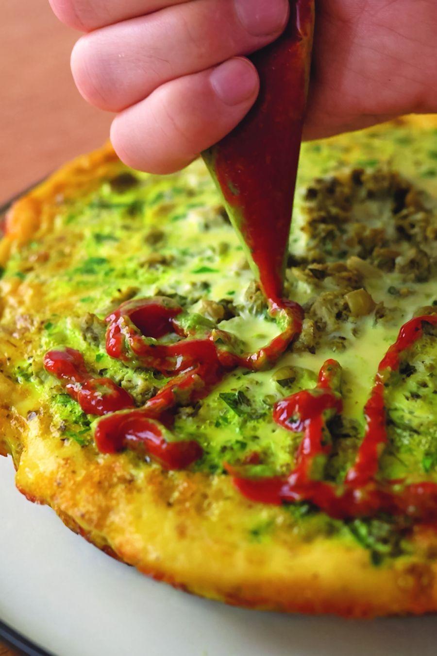 ♦ Сверху пишем подходящую надпись соусами, можно взять шрирачу и кетчуп или добавить немного песто, чтобы выглядело совсем аутентично. Аль-хайтам обычно пишет тейватским алфавитом слово «размышление».