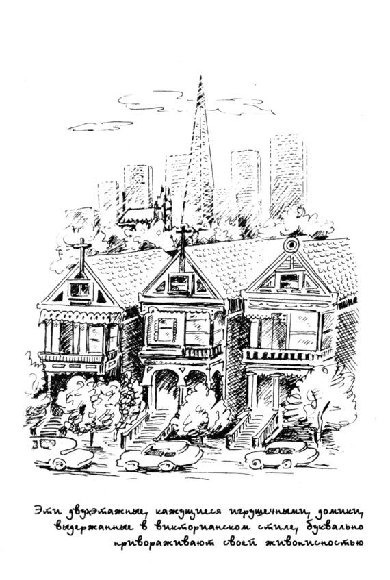 Улицы Сан-Франциско действительно красивые. Многие — прямые, как струны. Даже окраины, с более дешевым жильем, имели привлекательный вид. Чистый, светлый город дышал прозрачным, свежим воздухом. Двух, трех и четырехэтажные дома — типичны для Сан-Франциско. Исключение — центр, отданный во власть небоскребов.