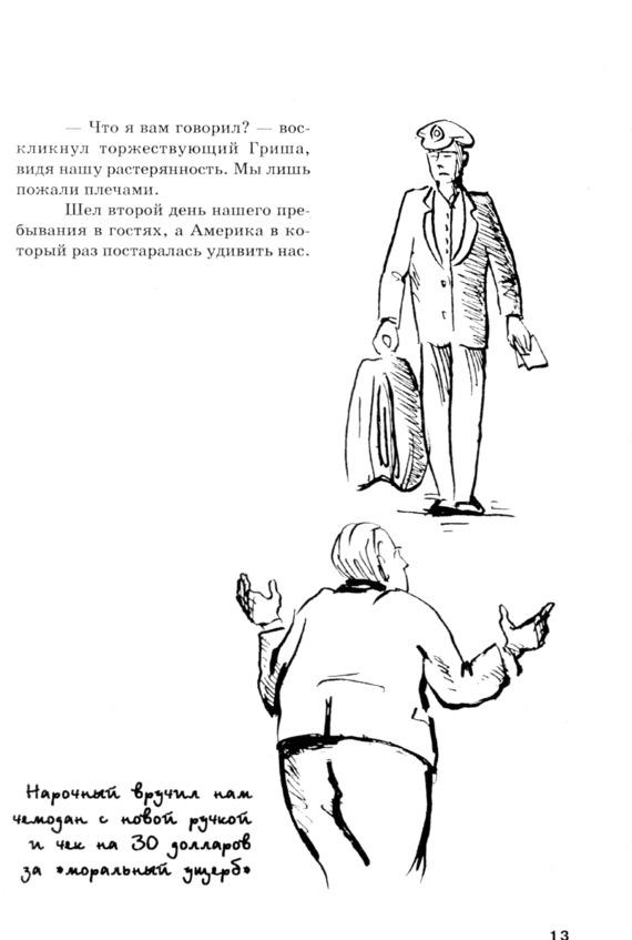 Вариант американца нас не устраивал: в чемодане находились крайне необходимые вещи вплоть до зубной щетки. Каково же было наше удивление, когда ровно в 17.00 специальный нарочный, преодолев немалый путь от Сан-Франциско до Сан-Хосе, вручил милый нашему сердцу рыжий чемодан с новой ручкой и чек на 30 долларов за «моральный ущерб».