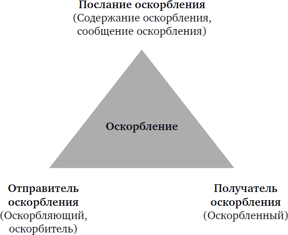 2. Оскорбления – это не просто сложная эмоция, а взаимодействие между отправителем оскорбления (= оскорбляющим), сообщением оскорбления (= оскорблением) и получателем оскорбления (= оскорбленным).