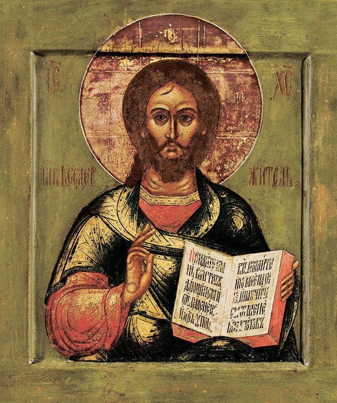 Спас Вседержитель (Пантократор) – так был назван этот образ в иконографии, – изображается либо восседающим на престоле, либо по пояс, либо по грудь. Его десница благословляет притекающих к иконе, а в шуйце Его – либо Евангелие, либо свиток со словами: «Приидите ко Мне, вси труждающиеся и обремененнии, и Аз упокою вы» или «Аз есмь свет миру; ходяй по Мне не имать ходити во тме, но имать свет животный».