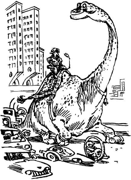 Бронтозавр быстро рос. Через месяц он достиг двух с половиной метров длины, и его перевели в специально выстроенный павильон. Бронтозавр бродил по огороженному загону и жевал молодые побеги бамбука и бананы. Бамбук привозили грузовыми ракетами из Индии, а бананами нас снабжали фермеры из Малаховки.