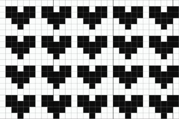 Рисунки могут быть самые простые, состоящие из повторения небольших элементов и более сложные. Пример чередования простого рапорта рисунка.