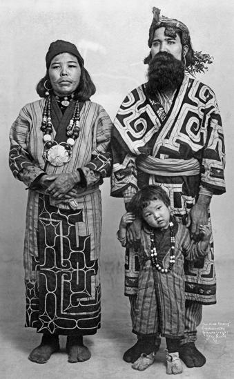 Семья айнов в традиционных одеждах. Фото студии сестёр Герхард. 1904 г. Исторический музей Миссури, Сент-Луис, США