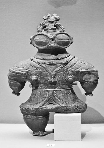 Статуэтка догу. Конец периода Дзёмон (1 тыс. до н. э.). Находка из Камэгаока, преф. Аомори. Токийский национальный музей, Токио, Япония