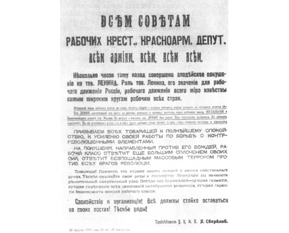 Обращение ВЦИК в связи с покушением