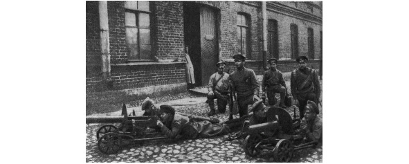 Обучение красноармейцев пулеметной стрельбе.