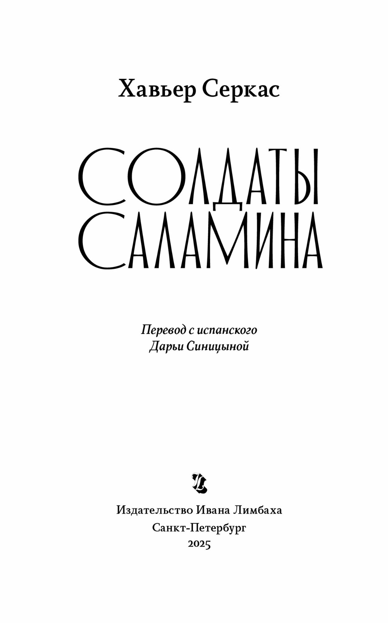 Ровно через двадцать лет после того, как «Солдаты Саламина» были омыты слезами в заснеженной московской очереди, 24 ноября 2024 года Хавьер Серкас — признанный классик испанской литературы — занял почетное кресло с литерой «R» Королевской академии языка, ранее принадлежавшее Хавьеру Мариасу. В академики Серкаса рекомендовал Марио Варгас Льоса, автор восторженного отклика на «Солдат Саламина». Перуанский классик умер незадолго до выхода русского издания романа Хавьера Серкаса в образцовом переводе Дарьи Синицыной. Предыдущей ее работой был роман Варгаса Льосы «Город и псы», столь же пронзительно современный, как и «Солдаты Саламина», вводящий читателя в «слепую зону» главных вопросов бытия.
