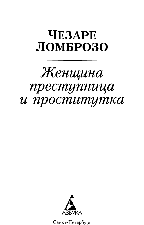 Женщина преступница и проститутка / Чезаре Ломброзо ; пер. с ит. Г. Гордона. — СПб. : Азбука, Азбука-Аттикус, 2022. — (Азбука-классика. Non-Fiction).