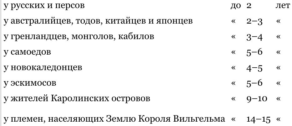 Грудные железы имеют, стало быть, в глазах дикарей так мало значения как орган эротический и, наоборот, так исключительно ограничены своей ролью в деле материнства. При этом не следует упускать из виду продолжительность периода кормления грудью младенцев, которая длится: