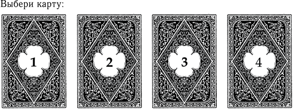 Карты – это психологический инструмент, который актуализирует информацию из вашего подсознания, и мы можем трактовать ее как подсказку. Пространство всегда работает на нас и в нем есть ответы на все наши вопросы – если их задавать, то непременно придут ответы. Карты в этой книге как раз для того, чтобы вы смогли научиться общаться с пространством. То, что будет не про вас, вы просто не увидите, а та информация, которая должна вас коснуться, обязательно до вас дойдет. Пользоваться картами, которые даны после каждой главы, нужно следующим образом: положите перед собой четыре пронумерованные карты из приложения к этой книге. Закройте глаза и выберите любую из них. Найдите текст, подходящий к выбранной на карте цифре, и получите подсказку от бессознательного.