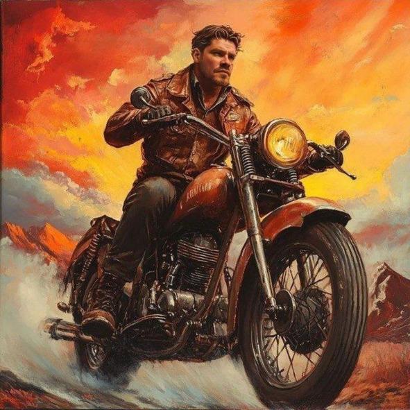 Роберт медленно ехал на мотоцикле по разрушенным улицам, пробираясь сквозь обломки цивилизации. Он был мужчиной среднего роста, 38 лет, с короткой, небрежной бородой и аккуратными усами, которые придавали его лицу немного суровый, но в то же время добродушный вид. Его мотоцикл, старинный, из двадцатого века, издавал характерный звук, который эхом разносился по пустым улицам. С каждым поворотом он все больше осознавал, как сильно изменился мир. Когда-то эти здания были воплощением надежды и прогресса. Но теперь они лишь свидетельствовали о том, как рухнули возвышенные стремления. Мир изменился, и люди ушли из него.