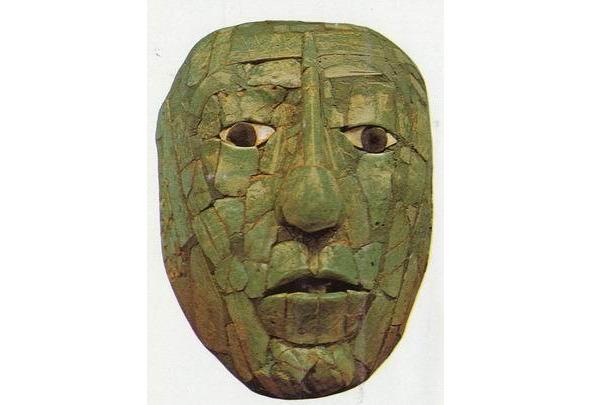 Гробница имела 9 м в длину и 4 м в ширину. Посередине ее стоял массивный каменный саркофаг, закрытый сверху огромной плитой с резными изображениями и иероглифическими надписями. Внутри саркофага находился скелет рослого мужчины средних лет, сплошь усыпанный массой драгоценных нефритовых украшений. На лицевой части черепа лежала изящная мозаичная маска из нефрита и раковин, видимо воспроизводящая внешний облик умершего.